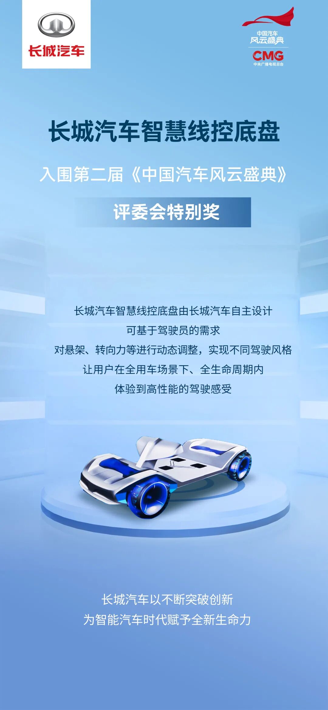 ▲ 长城汽车智慧线控底盘入围CCTV第二届