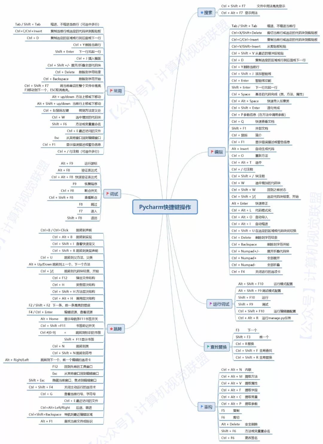 4. Python必备收藏!博士大佬总结的Pycharm 常用快捷键思维导图!(链接,可点击查看)
