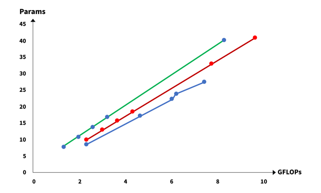 图2:不同架构模型设计下的参数量与运算量