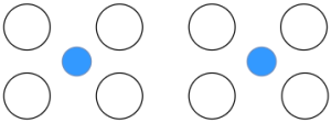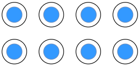 除了文字解析外,我们还可以结合图例来观察。如果用空心圆圈表示 Y 分量,实心圆(蓝色)表示 UV 分量,则 YUV 4:4:4 采样逻辑可以表示为下图(图例颜色不代表实际采样颜色):
