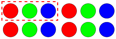 对于一个宽度为 A 个像素、高度为 2 个像素的采样区域(两行四列)