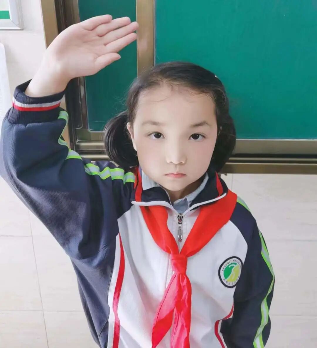 辅导员老师带着孩子们学习并示范了红领巾的正确系法,掌握了敬队礼及呼号的标准姿势。