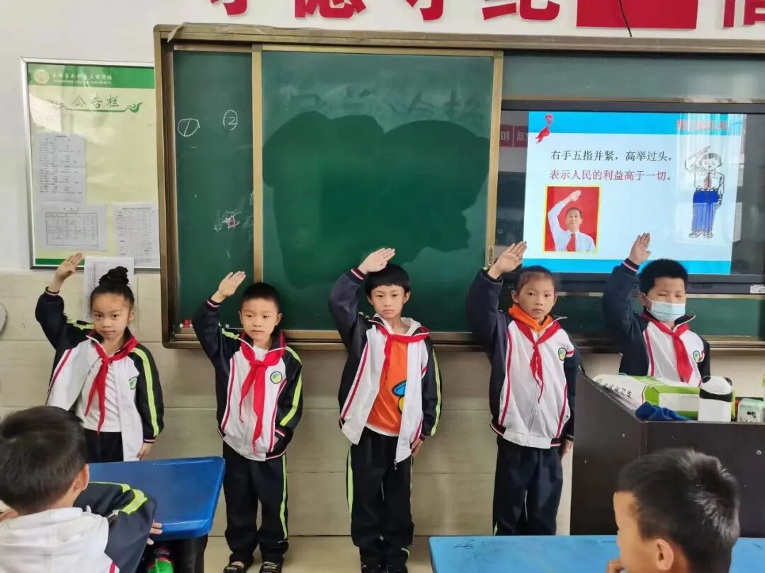 各个中队辅导员们通过视频,PPT讲解,现场指导等方式,带领孩子们学习了少年先锋队的光荣历程及“六知六会一做”,孩子们听得入神,眼中充满了对少先队的向往。