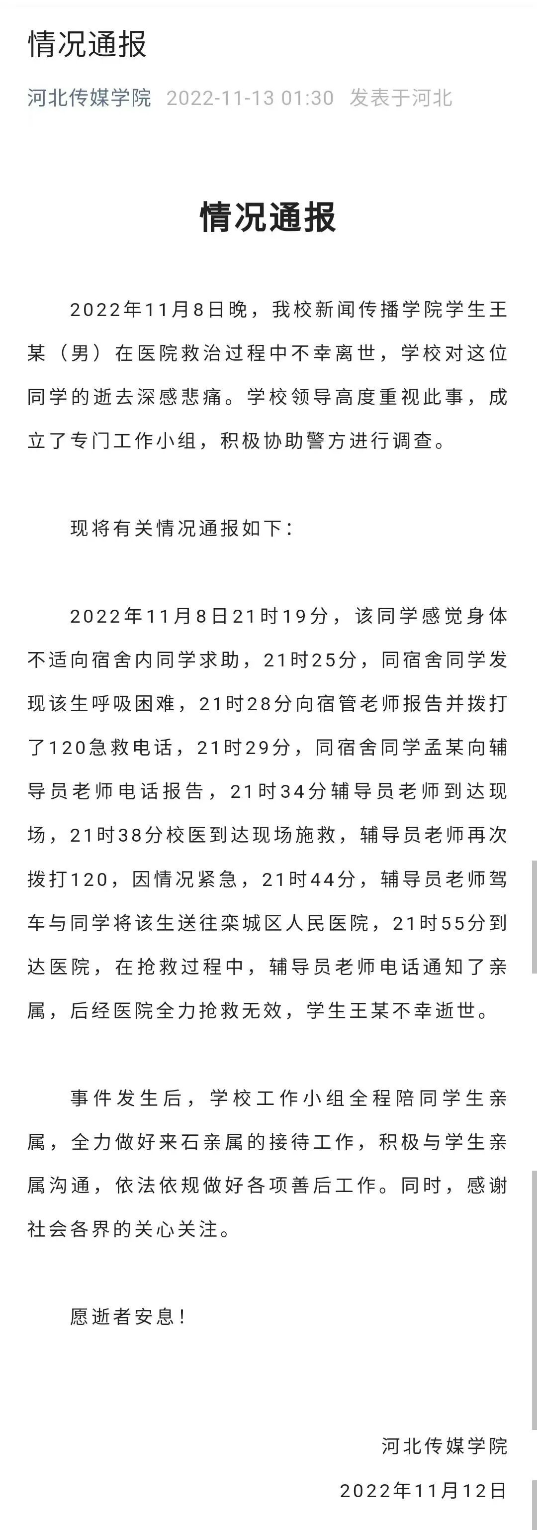 河北师大临时疏散,官方回应!据微信公众号“石家庄发布”11月13日消息,石家庄市疫情防控总指挥部办公室发布通告称,当前,石家庄市疫情防控形势严峻复杂,局部存在散发点,但总体可控。近日,河北师范大学等驻石高校疫情形势异常复杂。根据对高校疫情形势发展变化的研判,为确保师生身体健康安全,对河北师范大学师生采取临时疏散措施,目前已全部完成。正在对学校场所进行全方位消毒消杀,确保校园整体干净卫生安全,从明天开始,将组织学校无风险人员陆续返回学校。石家庄市委、市政府全面对标对表中央进一步优化防控工作的二十条措施,不折不扣地落实到位,把防控措施精准落实到最小单元,划定了部分高风险区;除此之外,实行常态化疫情防控,全力维护正常生产生活秩序。请广大市民保持冷静、坚定信心,理性面对疫情,不恐慌、不信谣、不传谣,主动配合疫情防控工作。同时,希望广大市民做好个人防护,出现疫情及时报告。