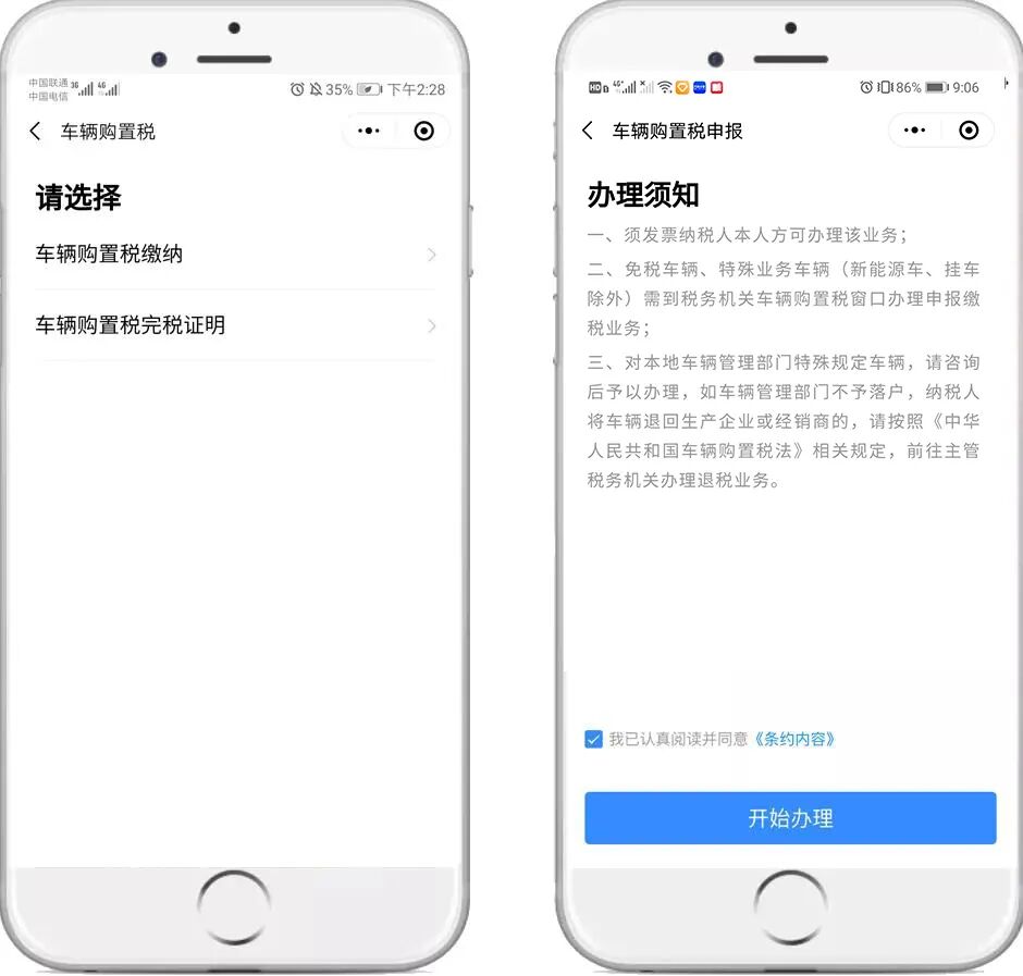 点击“车辆购置税缴纳”服务,阅读办理须知,点击“开始办理”。