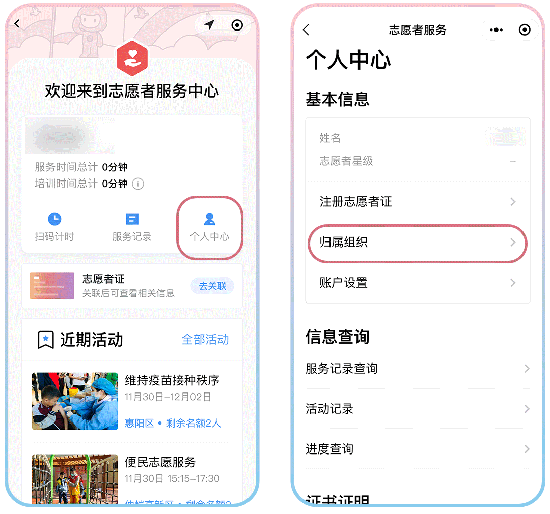 查询个人志愿服务详细信息哦