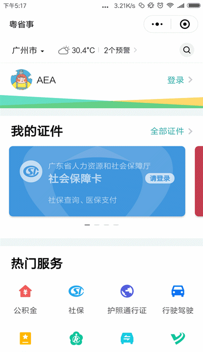 快使用“粤省事”小程序