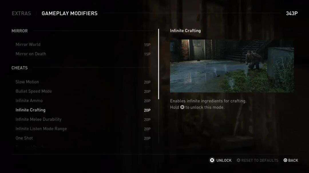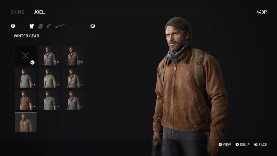 战斗的部分相比以往变化不大,主要提升了敌人AI,改善了枪械手感,其他则更多的是表现力上的进步,比如更好的特效,基本的玩法并没有大变化,Joel还是那个板砖战神。此前我们一直期待《最后生还者 重制版》能否引入2代的即时闪避和匍匐、跳跃等新玩法,可能对这次重制来说工作量太大了,有些遗憾,幸好初代本身的玩法也足够自洽。官方预告中展示的敌人AI细节,包抄、隐蔽和更积极的跑动提升了战斗随机性值得一提的是,原版中简单带过的武器升级动画这次都按照2代的规格做了出来,我们终于能看到Joel改枪的细节了。遗憾的是,因为改枪选项和原版保持一致,并不能像2代一样做出更换握把、导轨等丰富的动画,Joel的武器选择也没有2代两位主角那么多,所以想要达到2代那样的动画细致程度,还是有些困难。在首次通关之后,玩家可以赚取点数,用于解锁游戏的额外内容,比如可以给两位主角更换服装、背包、武器的皮肤,此前已经在《神秘海域》和《最后生还者2》里出现过的通关后作弊器、滤镜、永久死亡模式也都在这次的额外内容选单中。除了此前官方展示过的各种索尼第一方游戏联动T恤,还有几套特殊服装,包括两个角色在2代的着装