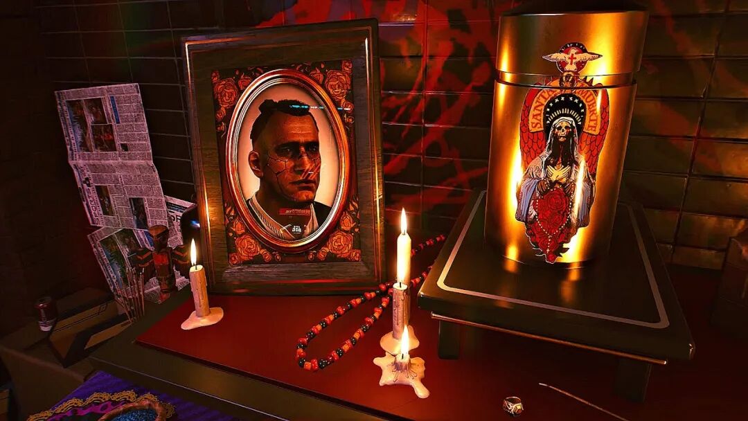 所以在好兄弟「杰克」的葬礼支线任务中,虽然制作组为了渲染情绪并没有真的像现实版中那样喜气洋洋,但相比其它文化里庄严肃穆的氛围,我们仍能在墨西哥人的灵台上看到微笑的耶稣枯骨,俗艳的红色玫瑰花雕,与张扬浮夸的金色十字架。