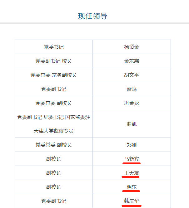 1月16日,天津大学“现任领导”一栏信息更新显示,马新宾、王天友和明东任天津大学副校长,韩庆华任天津大学党委副书记。
