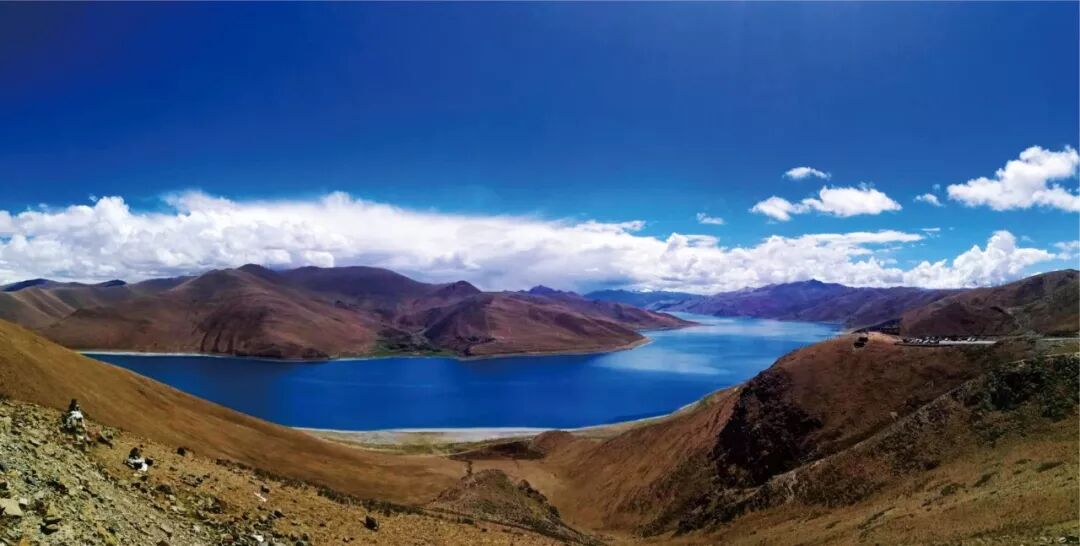 从拉萨出发沿雅鲁藏布江前行,过曲水大桥上冈巴拉山,到山顶后俯瞰西藏三大圣湖之一的羊卓雍措。