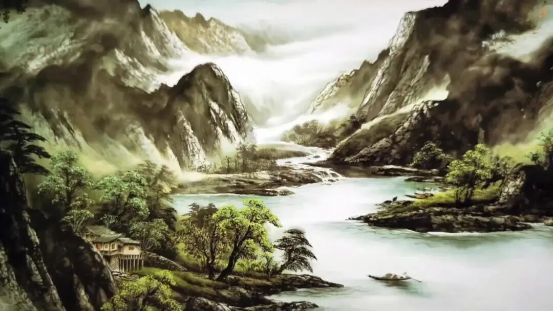 《你看我的家》山水画,再现了东方美学意境:江流天地外,山色有无中,依山傍水居,一叶小舟过。