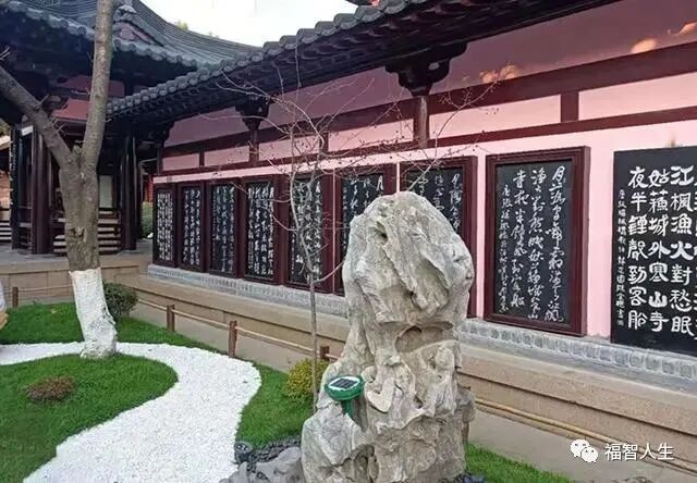 我挪步到寺院的历史长廊,映入眼帘的是《枫桥夜泊》的历代名人的碑刻,“月落”“乌啼”“江枫”“渔火”的繁华浮生不过是一梦的沧桑。