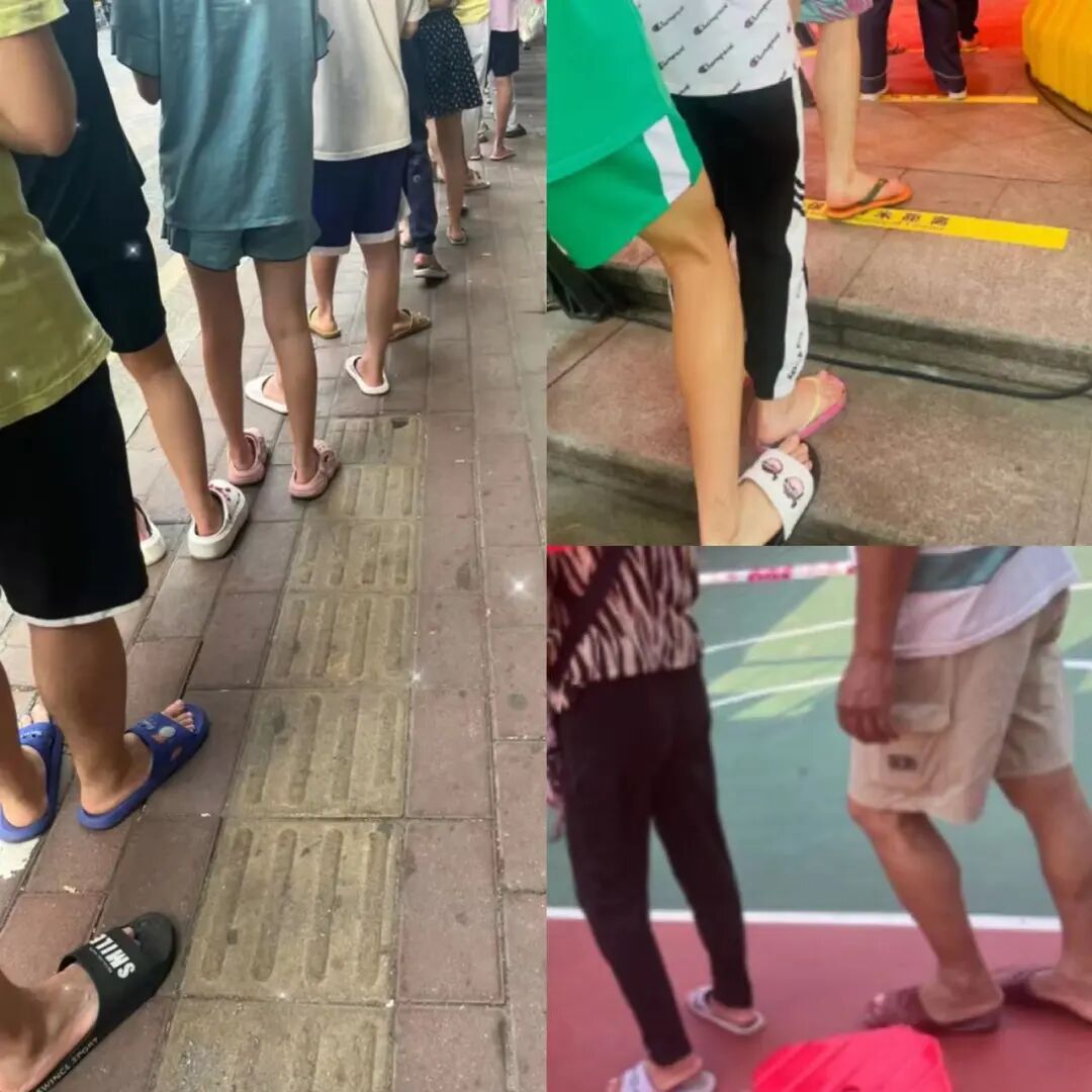 在广州做核酸,你会发现穿着拖鞋的老广随处可见,有人在排队时,还顺手捡起木棉花打算拿回家煲汤。