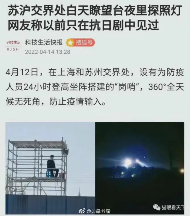 比如,苏州在与沪的交界处,设置了防疫人员24小时登高坐阵搭建的"岗哨”。