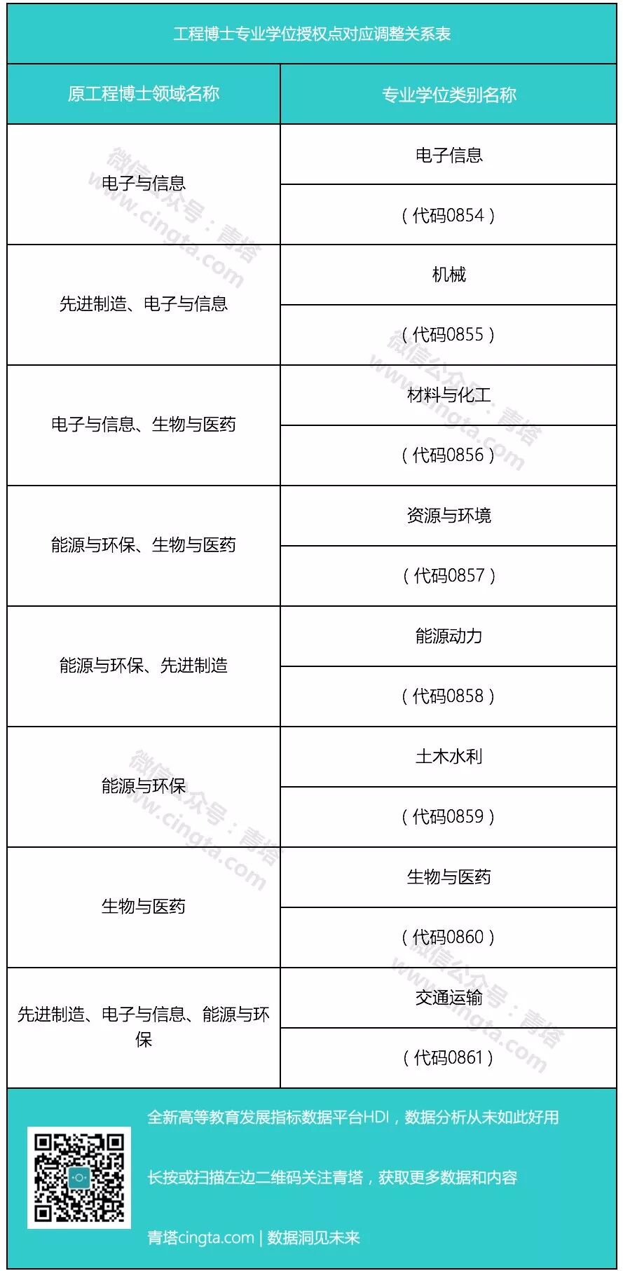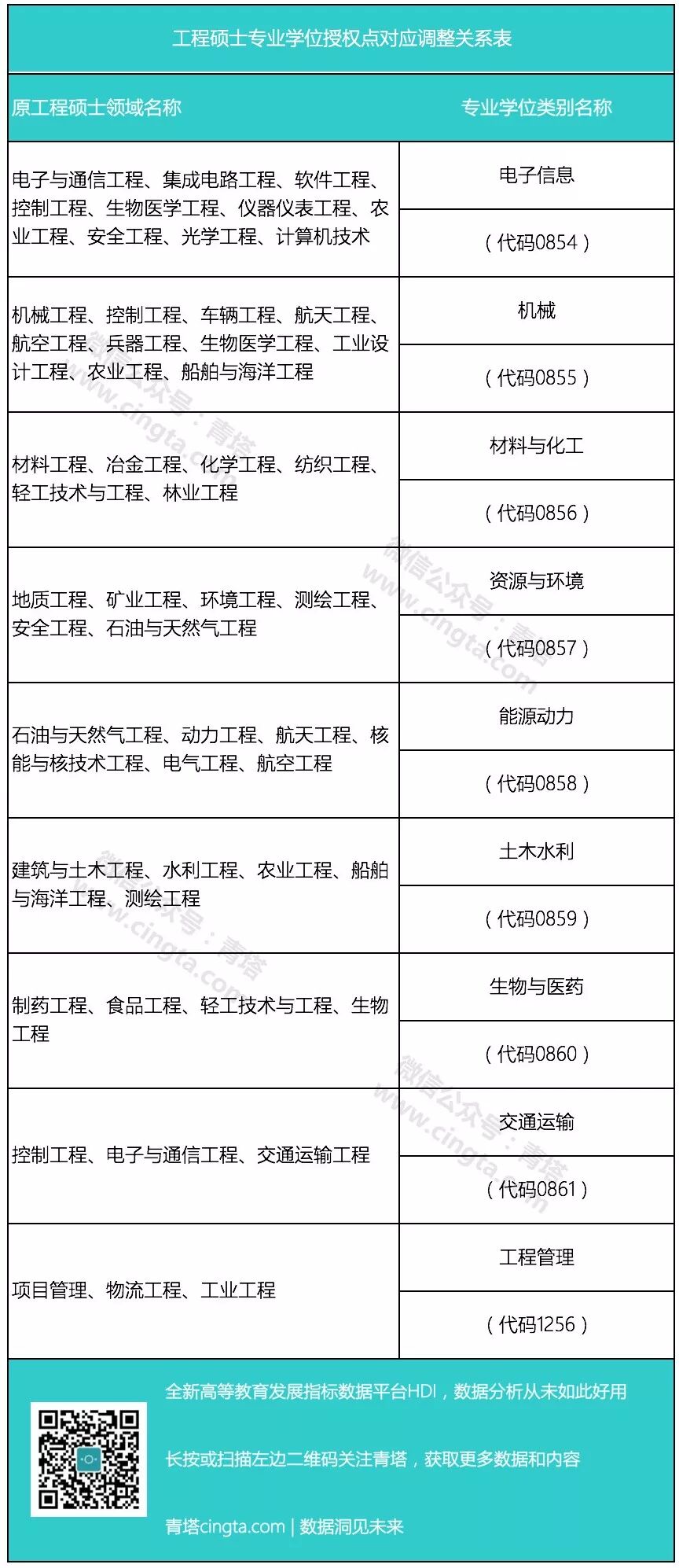 昨天,国务院学位委员会办公室正式下发《关于对已有的工程硕士、博士专业学位授权点进行对应调整的通知》,决定对已有的工程硕士、博士专业学位授权点进行对应调整,工程专业学位类别调整为电子信息、机械等8个专业学位类别。