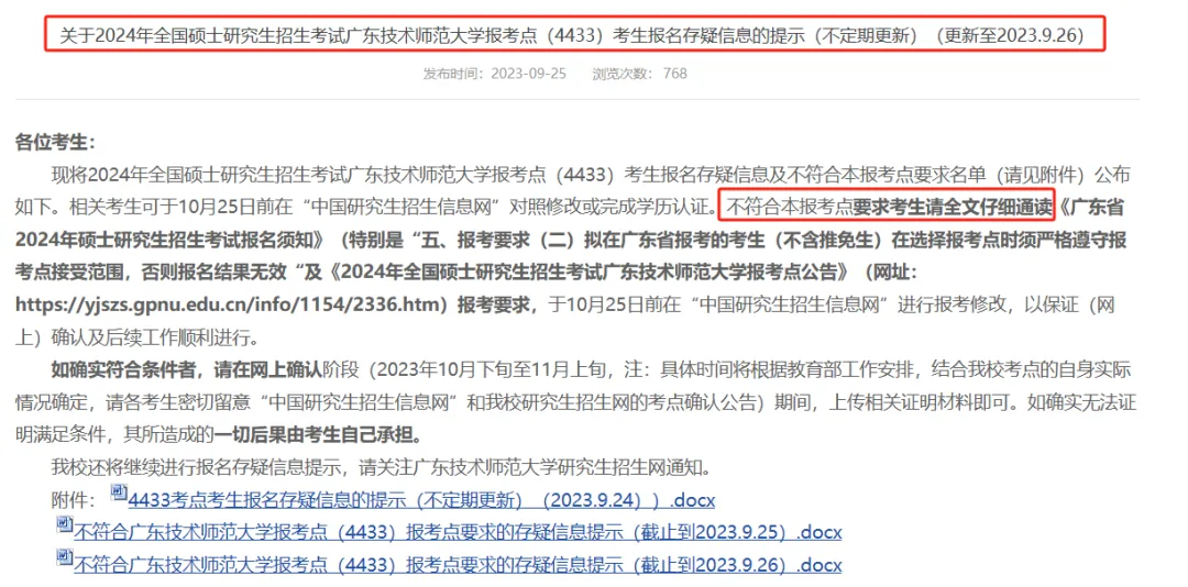 ①考点选择不合符要求。大家在选择考点前,一定要仔细查看自己考试所在省份的网报公告,查看你报考的院校对报考点是否有特殊要求,以免出现报考信息填写错误。