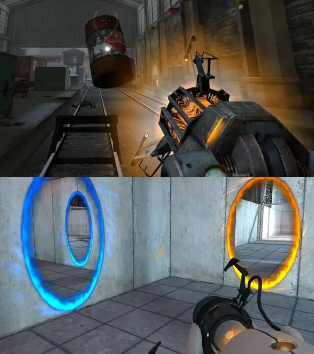 与Dude的对战中,Guy还拿出了类似《半条命2》中的经典道具重力枪,以及来自《传送门》的传送枪。虽然片中两把武器在造型上与原版有一些差异,但功能上十分接近。