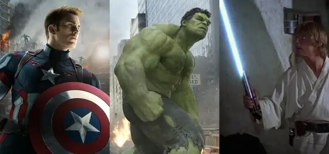在与Dude的决战中,Guy从道具库中拿出了一大堆惊喜的武器展开反击,其中就包括美国队长的盾牌、绿巨人的手臂,以及绝地武士的光剑!(背景还奏起了《复仇者联盟》和《星球大战》的配乐)