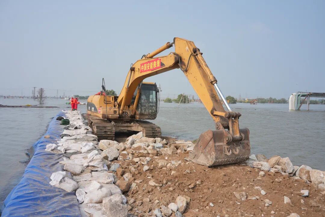 在任务一线,中国安能救援的各类高精尖装备联合作战封堵溃口。溃口处,推土机、挖掘机、自卸车等重型工程救援装备,争分夺秒高效作业。河面上,多波束无人侦测船进行溃口水下部分及河底冲刷数据采集和三维建模。地面上,全站仪每一小时对溃口口门宽度、溃口水位高程、溃口附近堤坝变形情况进行测量和监测。空中,测流无人机全程对水流变化和现场情况进行侦查。一批高科技装备在这次溃口封堵中运用,极大地提高封堵效率。