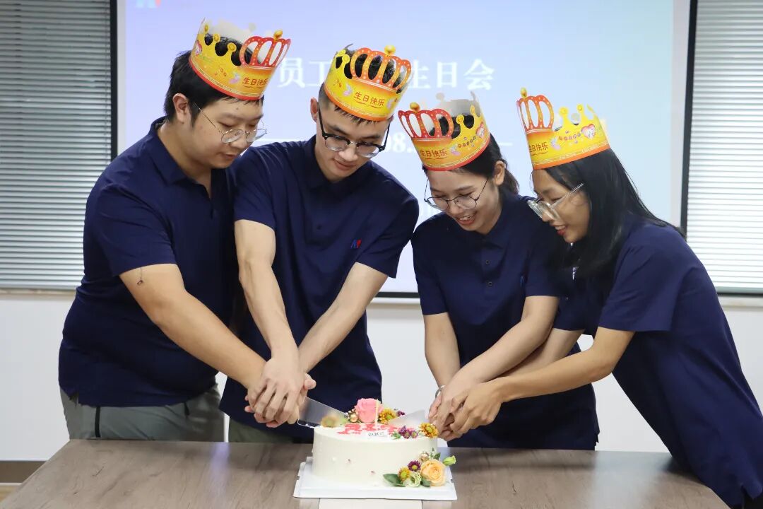 项目部为8月份过生日的员工们精心准备了生日蛋糕、生日贺卡和礼物,伴随着摇曳的生日烛光,“寿星”们纷纷许下美好愿望。