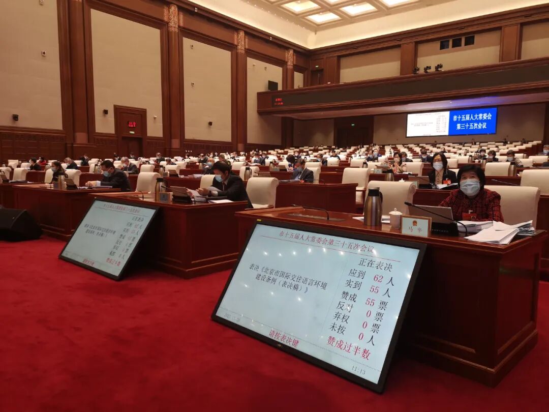 《北京市国际交往语言环境建设条例》已由北京市第十五届人民代表大会常务委员会第三十五次会议于2021年11月26日通过,现予公布,自2022年1月1日起施行。