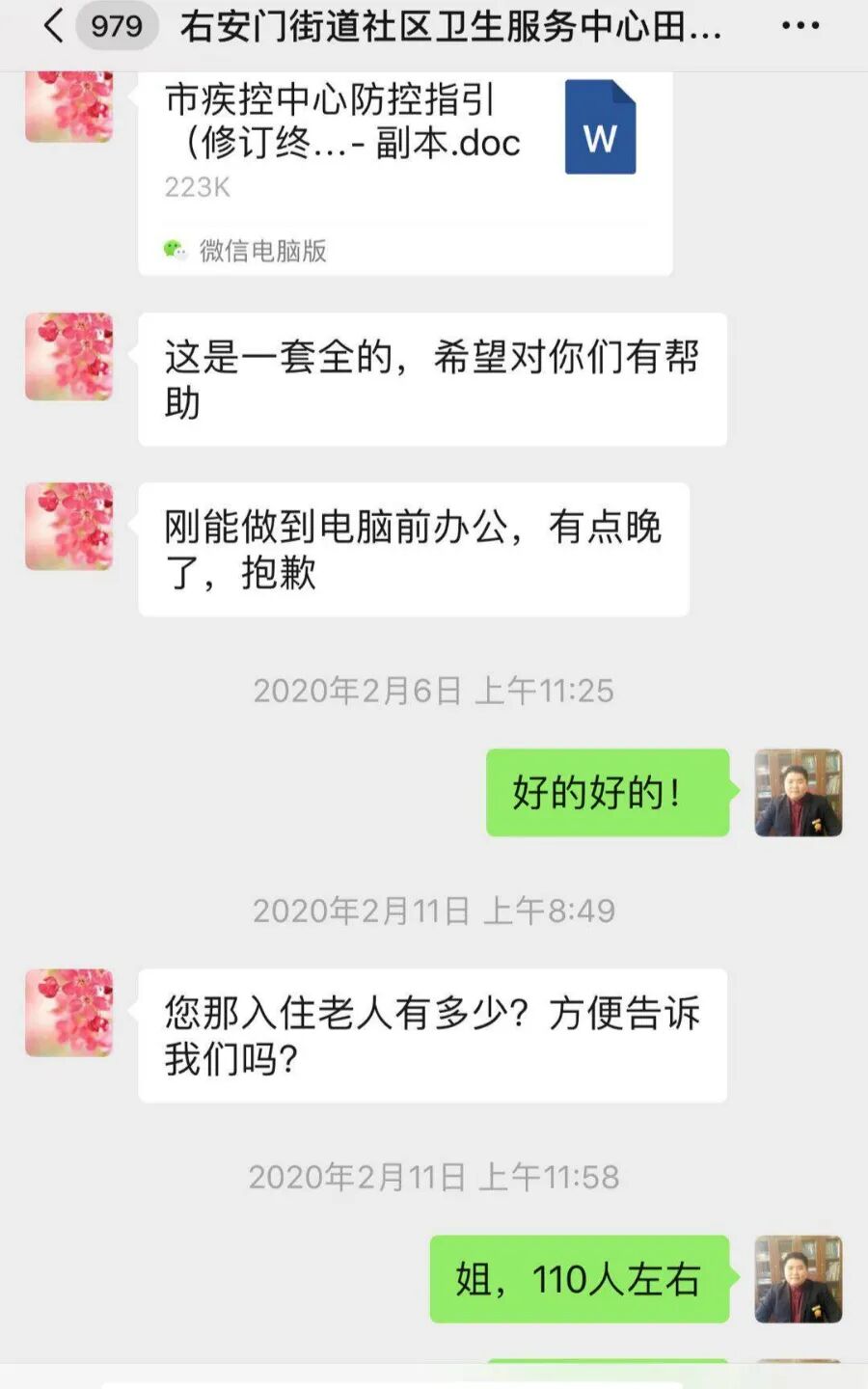 两位代表紧急行动,在春节前就分别组织员工进行疫情防控培训。为把防控工作安排到位,大小事他们一直亲力亲为,参与24小时值班,对来往家属进行体温检测和劝返工作,做好院里院外的卫生消毒,仔细检查角落,确保全院不留盲区,不出疫情。