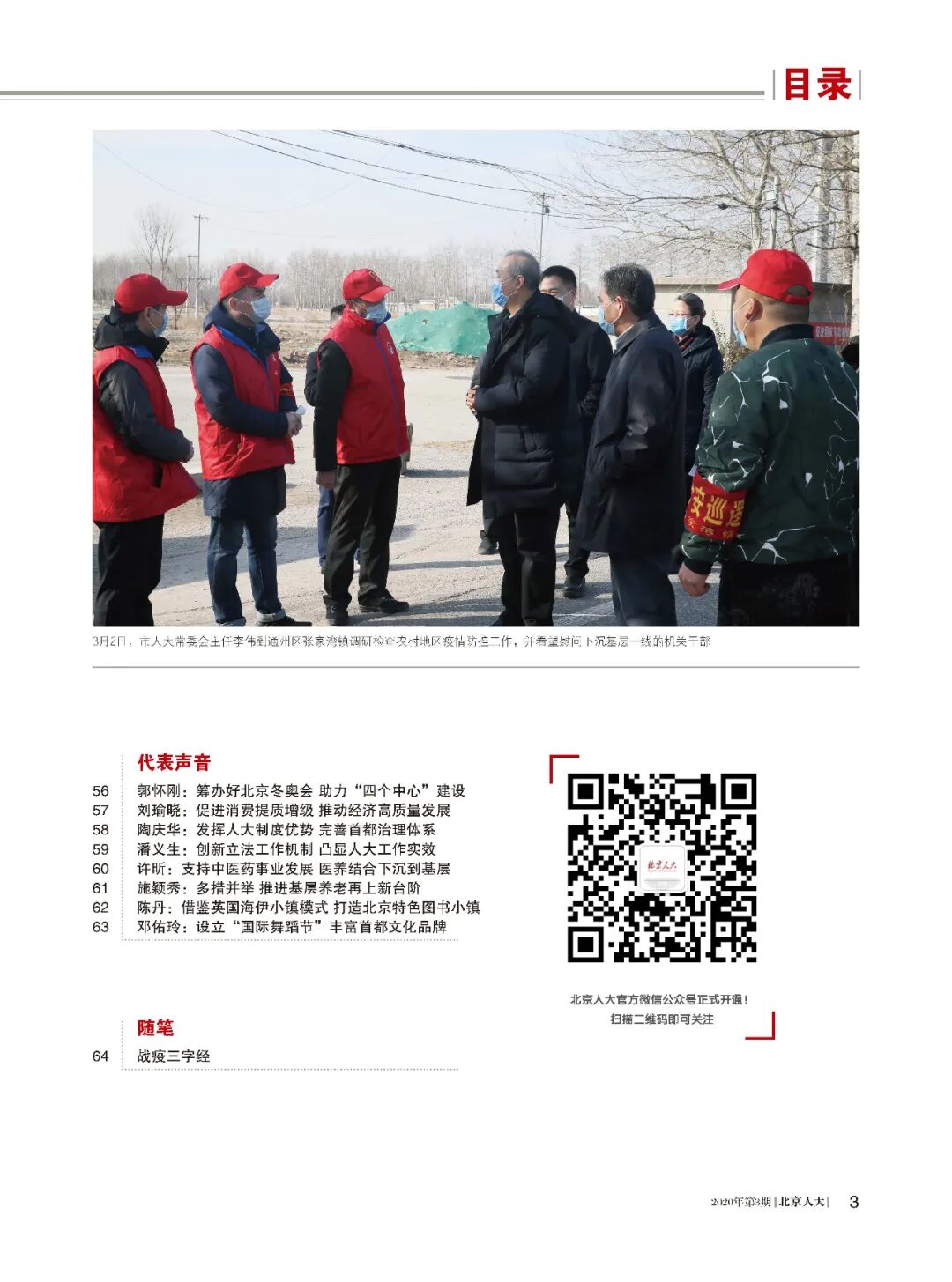 2020年第3期的《北京人大》杂志在这样一个时间点上和大家见面了!带着勇气、带着信心、带着憧憬,本期杂志的卷首语主题是“阳光总在风雨后”!最新一期杂志有哪些精彩内容?先带您一睹为快。