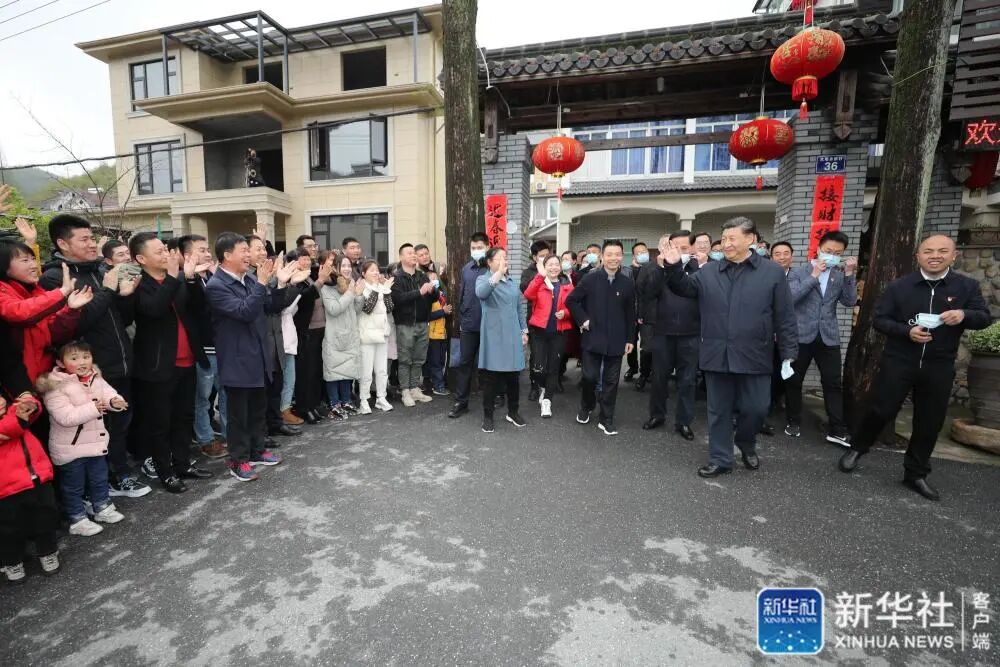 ↑3月29日至4月1日,中共中央总书记、国家主席、中央军委主席习近平在浙江考察。这是3月30日,习近平在湖州市安吉县天荒坪镇余村考察时,向村民们挥手致意。