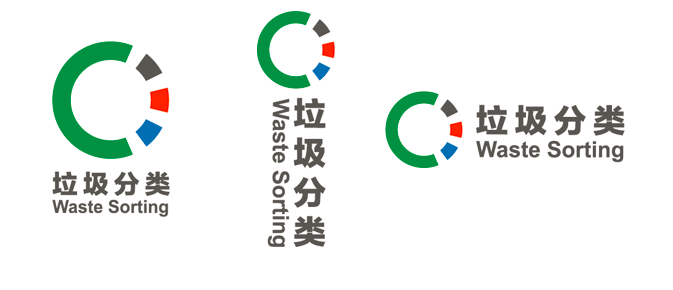 “C”:是“收集”英文Collection的首字母,“绿C”、蓝色、红色、灰色四个色块既相互分开,又拼接成环,“LOGO”代表四品类垃圾要分类收集。