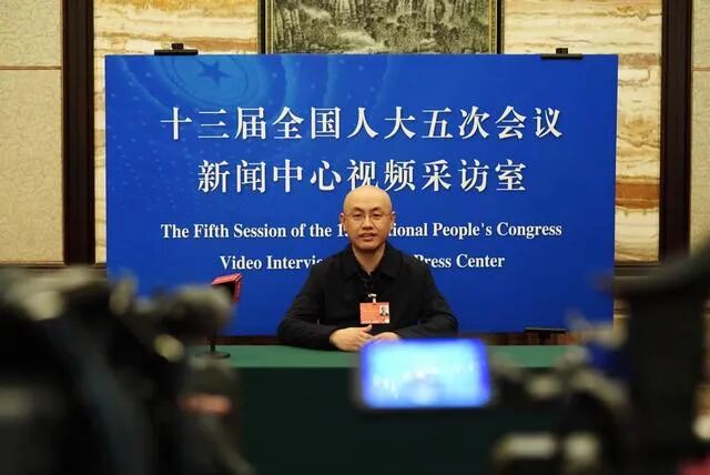 ▲全国人大代表、北京航星机器制造有限公司机械加工部数控组组长戴天方接受媒体采访![]()