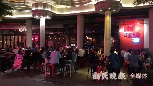 在158坊下沉式广场的另一端,21N1 Bar&Restaurant的露天座位已是座无虚席,这家主打运动主题的酒吧吸引了不少爱喝酒爱运动的年轻人,据老板Kelvin介绍,“五五购物节”期间,原价40元一杯的百威啤酒现价25元,3L装从200降到130;原价40元一杯的三宝乐,现在打折价30元,3l装更是优惠,仅需160元;老外比较喜欢喝的sangria果酒也从45元降到了30元。“晚上来我们家的人很多,感谢“五五购物节”带来的客流,我相信回到之前的盛况指日可待!”