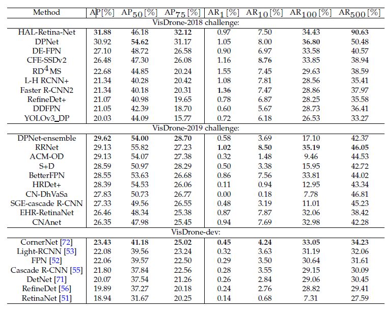 在这篇论文中,作者重点关注了2018年和2019年的VisDrone挑战,以及挑战的方法、结果和评估方案,希望这一挑战能在很大程度上促进相关领域的研究和发展。
