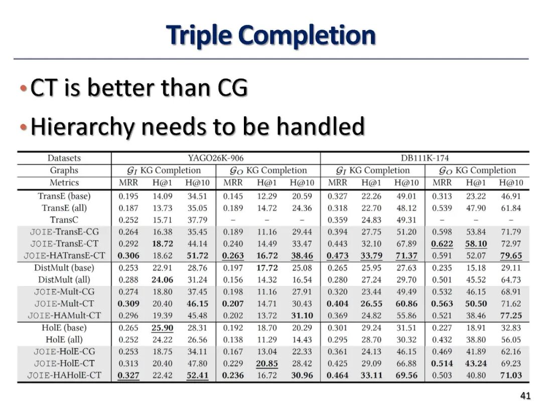 知识图谱由于其广泛的应用,如搜索引擎和问答系统,近年来受到了极大的关注。知识图谱嵌入是将实体表示为低维向量,并将关系表示为低维向量上的算子,在知识推理等任务中得到了广泛的研究和成功的应用。在本教程中,我们将介绍最新的知识图谱表示学习技术,它包含三个部分。首先,我们将回顾通常基于浅层嵌入的知识图谱表示技术,如TransE、DisMult和RotatE。其次,我们将讨论如何集成额外的符号信息,如逻辑规则和本体论,以更好地学习知识图谱的表示的最新进展。在第三部分中,我们将介绍图神经网络(GNNs)和最近在异构信息网络中研究的进展,图神经网络可以被认为是知识图谱的一般形式。