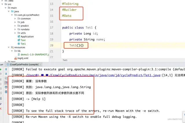 Lombok使⽤同时使⽤@Data和@Builder ,构建无参构造器报错!编译不通过。如下图: