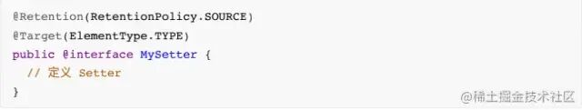 ⾸先创建⼀个 MySetter.java ⾃定义⼀个注解,代码如下: