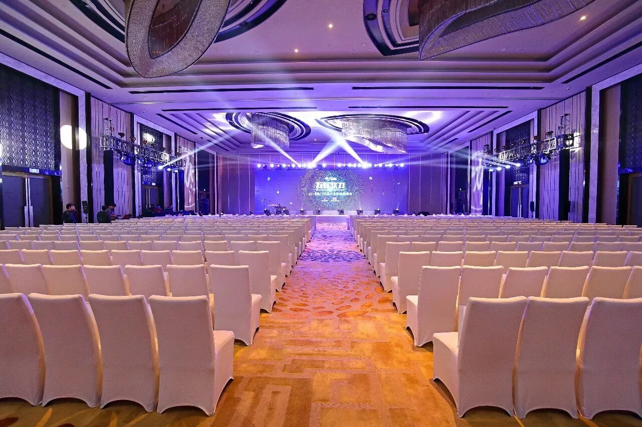 ▲峰会前一天,会场内外就已经布置完毕