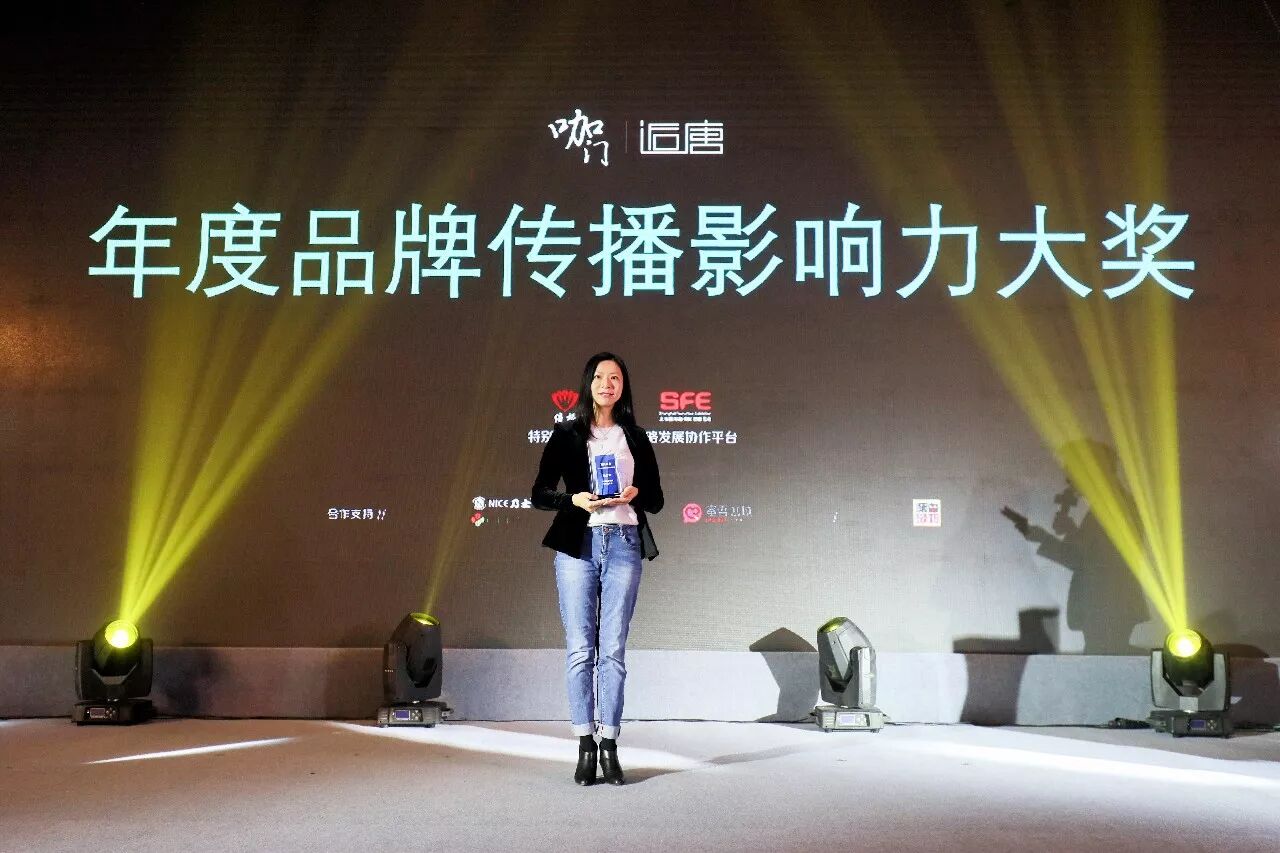 ▲星巴克中国获得由咖门授予的“年度品牌传播影响力大奖”,星巴克中国传播总监张蔚上台领奖
