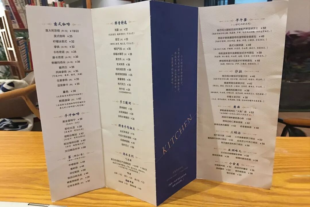 作为一家带餐的咖啡馆,群青的第一版菜单很传统:册子形式,带图片。