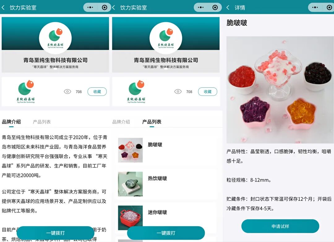 供应商的品牌介绍、产品详情等各种相关信息,可在饮力实验室小程序免费发布、展示。
