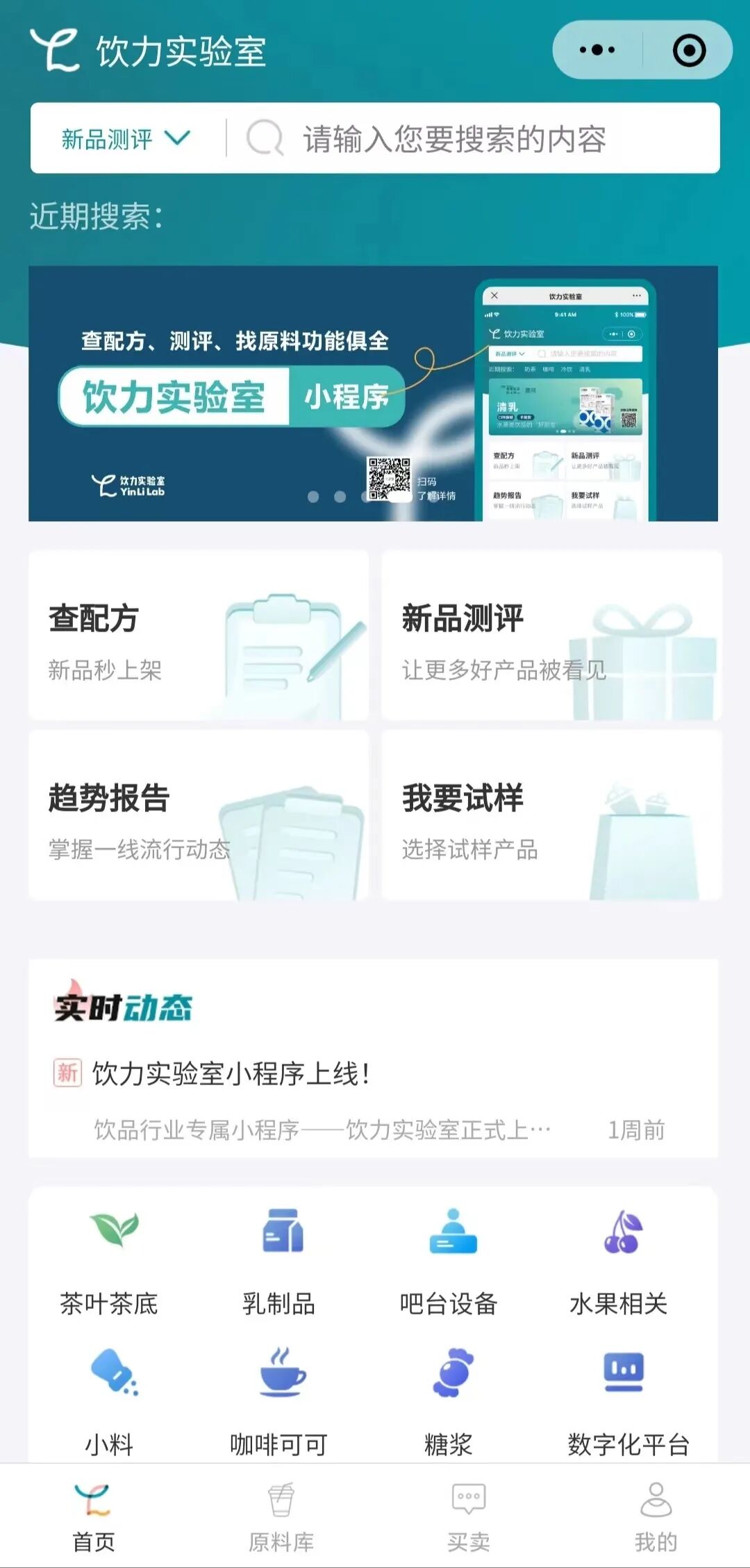 饮力实验室小程序已正式上线,这是一个饮品业专属的小程序平台。