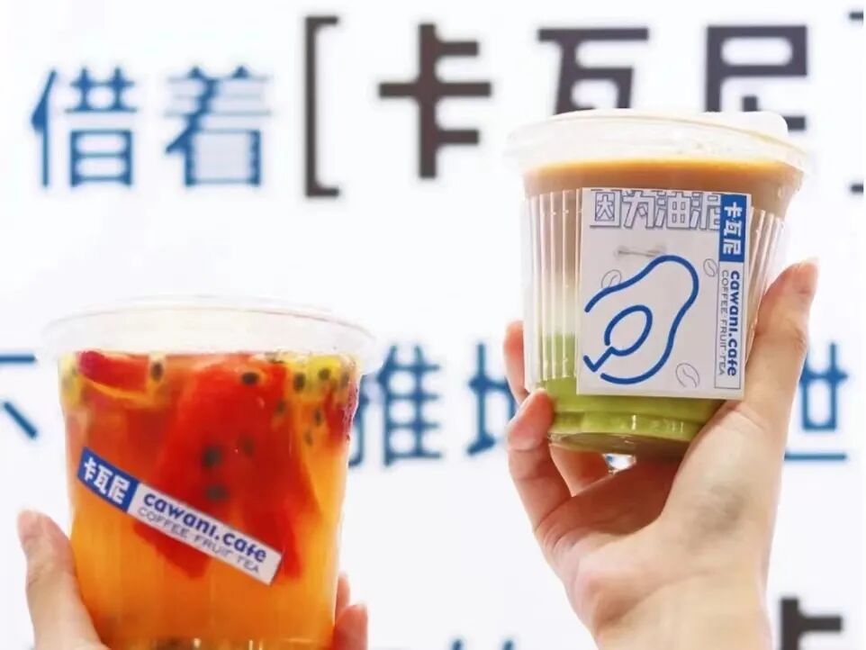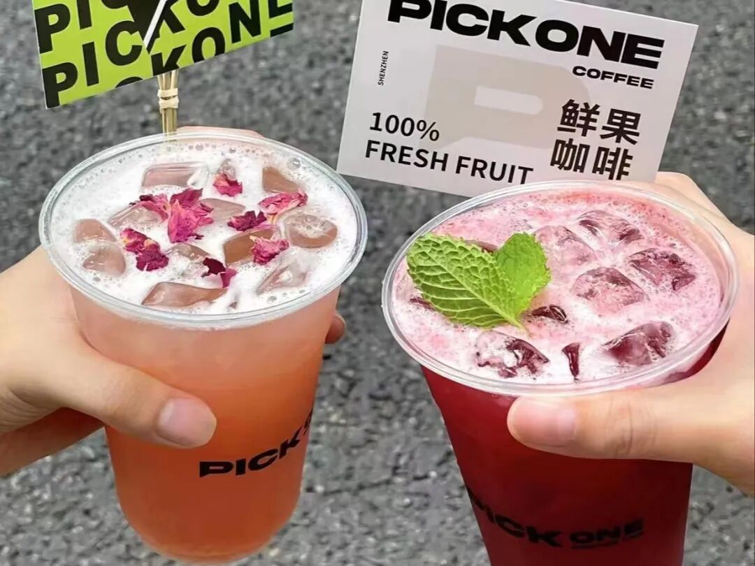 灵活的“小店模式”,让这一代果咖品牌在成本、盈利模式上更具有灵活性。而另一方面,空间的压缩,也意味着他们的经营策略,会更侧重产品和效率。有了新茶饮市场的培育和经验,鲜果咖啡品牌,在水果上新方面成长迅速。“我们多选择当季水果和时下流行元素结合进行产品创新,通过社交媒体运营,每一次上新都是一次话题的制造,这样能更大程度上保持品牌活跃度。”其次,除了香蕉、西瓜、椰子等常规水果,很多鲜果咖啡品牌,也在不断挖掘具有特色的小众水果,比如油柑、芭乐、刺梨,还有榴莲、牛油果等水果也被应用。作为一个新生的品类,鲜果咖啡品牌更注重“年轻化表达”。这些品牌,在社交平台上的标签多是“潮流”、“好玩”、“有趣”。比如,谐音梗在鲜果咖啡品牌中十分常见。PICKone鲜果咖啡的“有因油果”、“不榴余地”、“人口葡查”、“橙间新闻”等;卡瓦尼的“喜上莓桑”、“桃出掌心”、“全场蕉点”等。又如露营、克莱因蓝,快速跟上年轻人喜欢的元素。本来不该有“四种店面,四种风格”,ATM机式、克莱因莱、暗黑风、露营等都是年轻人喜欢的元素,被称为“懂打工人的鲜果咖啡”、“贩卖情绪的咖啡店”等。鲜果咖啡