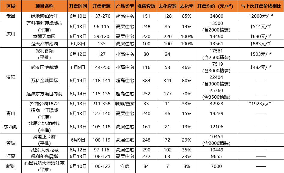 6月第一周入市的12个项目,去化最低的只有8%。去化好的,多数都是凭着价格优势,来以价换量。