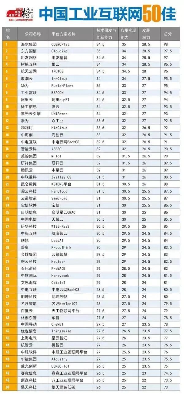 2020年9月,中国科学院《互联网周刊》发布“2020工业互联网创新排行榜榜单”,海尔卡奥斯位列榜单第1位。