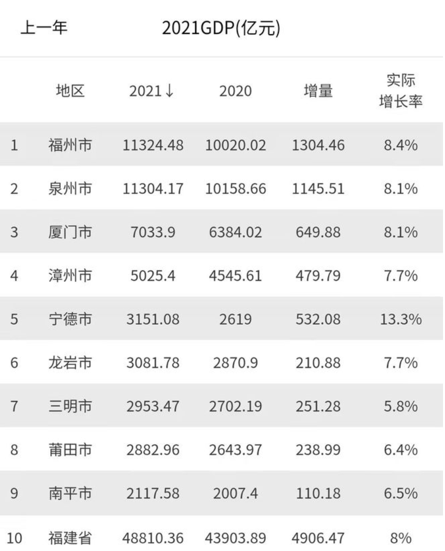 2021年泉州的GDP排名全省第二,仅次于省会城市福州,排在全国第21位,比东莞还高1名。
