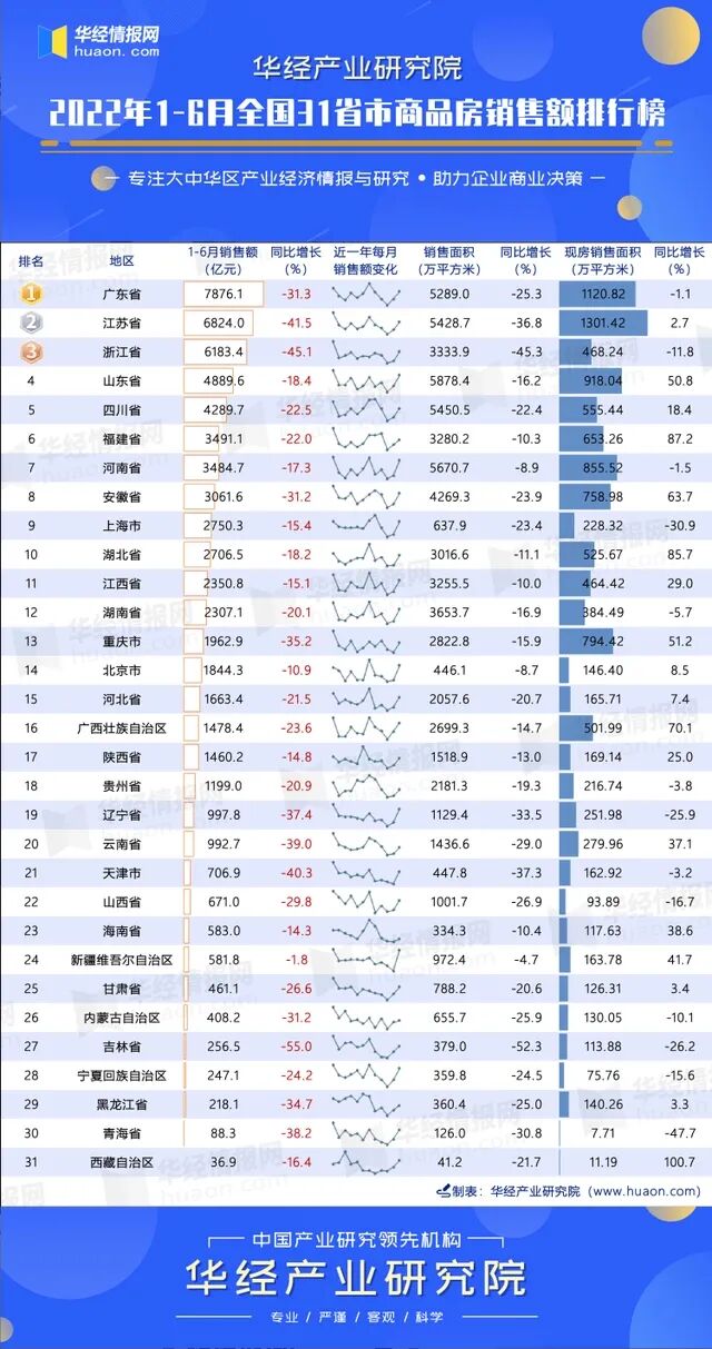 从这份榜单来看,今年上半年,广东省的商品房销售额排名全国第一,同比降幅大概只有1/3左右。