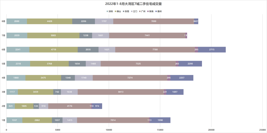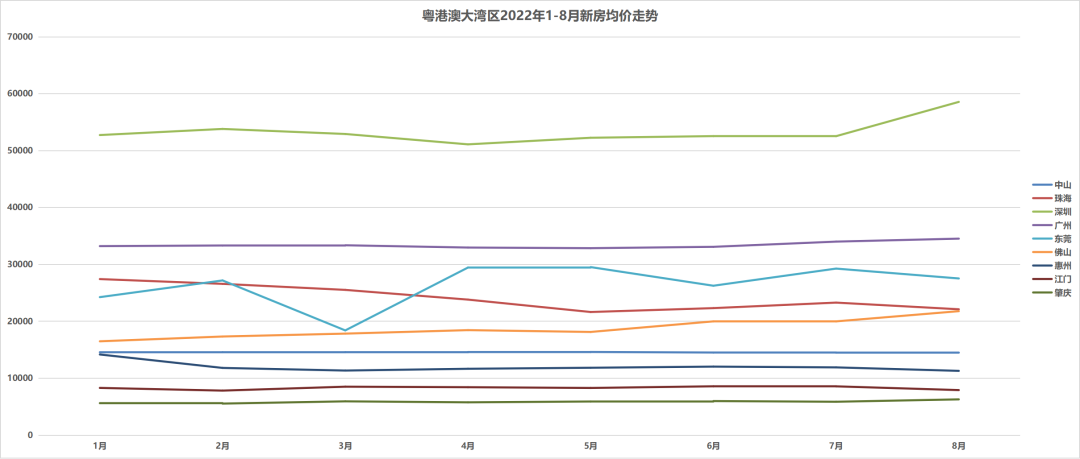 根据统计数据来看,最近一年,大湾区8城的二手房价走势与新房十分相似,大多比较平稳,在今年7-8月迎来翘尾行情。