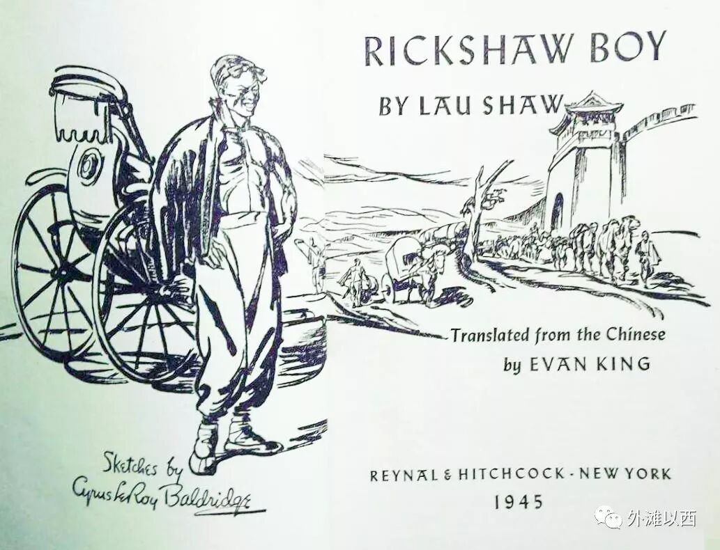 如下图是著名作家老舍的小说《骆驼祥子》的英文版封面装帧设计图,小说名字就是直译的,用这个Rickshaw,《骆驼祥子》后来改编成电影故事片成就了张丰毅和斯琴高娃,那是1982年。