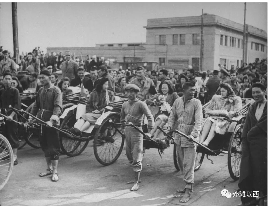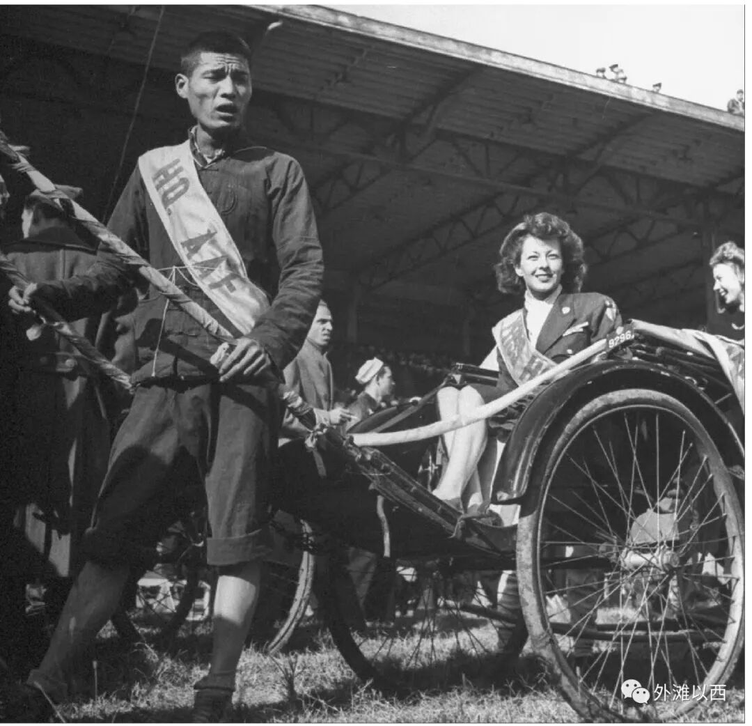 再说个黄包车的故事,1945年12月驻沪美军突发奇想,搞了一次上海黄包车拉力赛,盛况空前,比赛当日全上海轰动,比赛沿途那个人山人海,里三层外三层,电台实况转播的哦。
