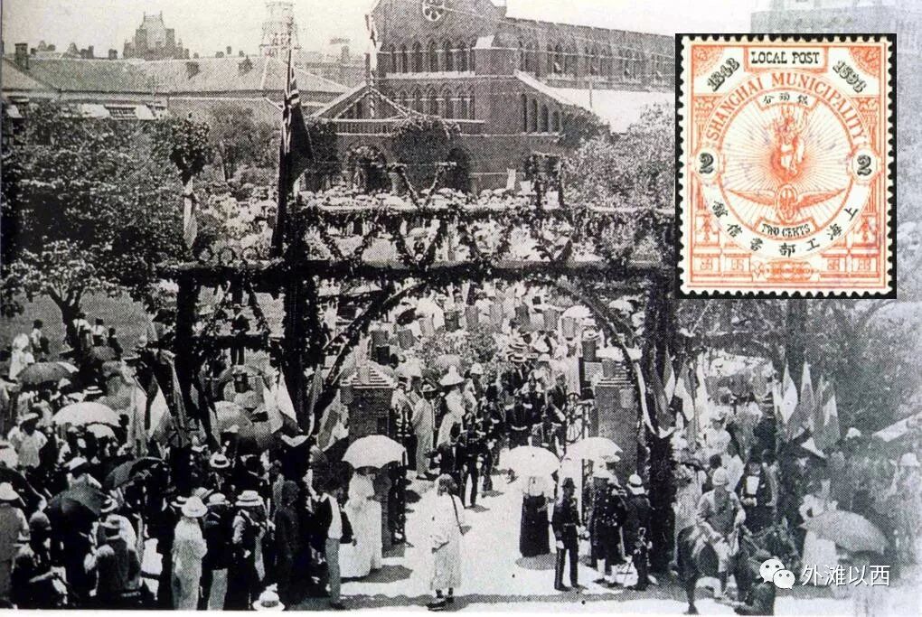 The Municipal Council organised festitivities marking the 50th anniversary of Shanghai as treaty port in front of the Holy Trinity Cathedral。